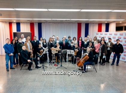Con el objetivo de incorporar en los funcionarios de la Institución hábitos de salud física y mental, los cuales repercuten directamente en un mejor rendimiento laboral, la Administración Nacional de Electricidad, realizó hoy martes 19 de julio, la actividad denominada "Terapia Musical" con la presentación de un quinteto musical con instrumentos de cuerda, bajo la dirección de la Lic. Asunción Cantero.