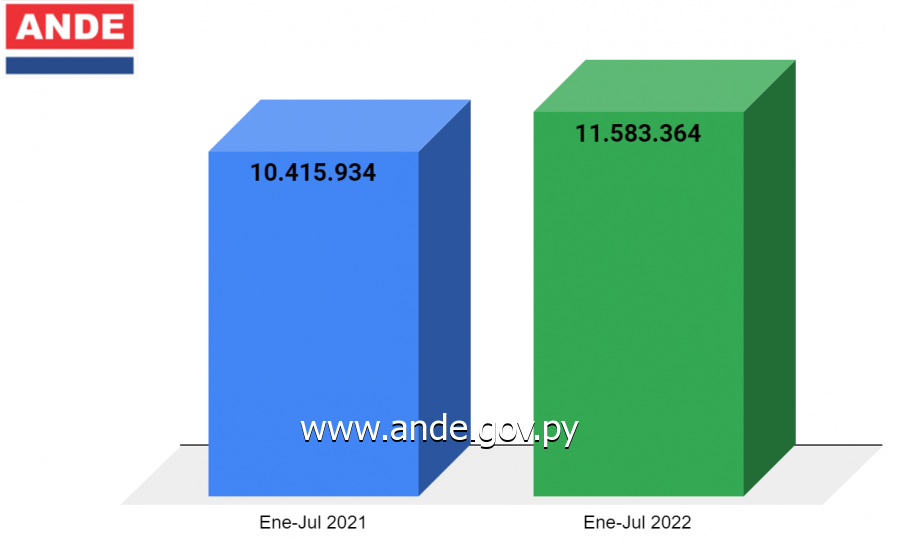 En base a un estudio comparativo realizado, el consumo de energía eléctrica registrado de todos los usuarios de la ANDE a nivel país, es decir, el Sistema Interconectado Nacional (SIN) aumentó en un 11,21% en estos primeros 7 meses del año 2022, con relación al mismo periodo del año anterior.