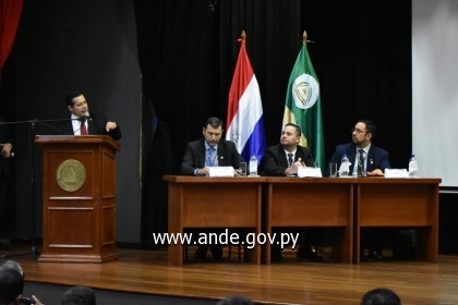 El presidente la ANDE, Ing. Félix Sosa, participó en la tarde hoy, lunes 08 de agosto del cte., del conversatorio sobre la Visión del Contexto Energético Nacional- Itaipu Binacional 2023, en el marco de la próxima Revisión del Anexo C del Tratado de ITAIPU, organizado por la Unión de Ingenieros de la ANDE (UIA) y la Asociación de Ingenieros Electricistas egresados de la UNE, en Ciudad del Este, departamento de Alto Paraná.