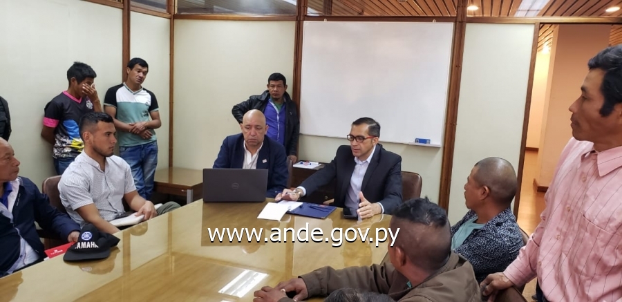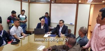 Prosiguiendo con los proyectos de electrificación de las comunidades indígenas del país, la Administración Nacional de Electricidad a través de la Oficina de Territorios Sociales y la Coordinación de Gabinete de Presidencia de la ANDE, y sus respectivos responsables, Lic. Luis Fernández y Lic. Oscar Gavilán, respectivamente, el día de hoy, martes 23 de agosto del cte., se llevó a cabo en la ciudad de Asunción, una reunión con 32 líderes de pueblos originarios de distintas regiones del país, para planificar y coordinar acciones a fin de seguir avanzando con las obras de electrificación para el suministro de un servicio eléctrico seguro y de calidad en las comunidades indígenas del país.