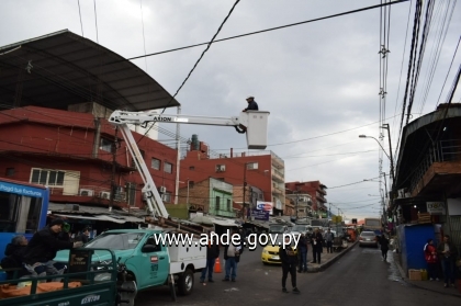 Los trabajos están siendo realizados por funcionarios de la División de Pérdidas Eléctricas de la Gerencia Comercial de la ANDE en coordinación con técnicos y jefes de la Municipalidad de Asunción.