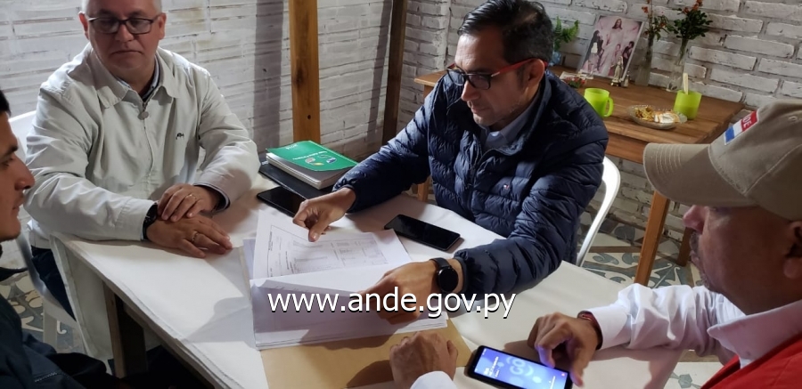 La Administrativos Nacional de Electricidad a través del jefe de la Oficina de Territorios Sociales, el Sr. Luis Fernández y el Coordinador de Gabinete de Presidencia, Lic. Óscar Gavilán, mantuvo una reunión de trabajo con el líder de la comunidad indígena Yvyty Corá y representantes de la diócesis de Villarrica del Espíritu Santo, para coordinar la ejecución de proyectos de electrificación y mejoramiento del servicio eléctrico para 47 familias de la mencionada comunidad.
