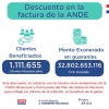 El presidente de la Administración Nacional de Electricidad, el Ing. Félix Sosa, dio a conocer en conferencia de prensa llevada a cabo en fecha 5 de octubre del corriente, con presencia del presidente de la República Mario Abdo Benítez, el informe del primer mes de vigencia del descuento del 25% en las facturas de energía eléctrica de los clientes residenciales en Baja Tensión. Al respecto el Pdte. de la ANDE comunicó que fueron exonerados durante el mes de setiembre, más de un millón cien mil clientes residenciales, cuyo consumo no haya excedido de 1000 kWh, que representa más de 32.800 millones de guaraníes IVA incluido. Asimismo, informó que dicho beneficio se extenderá hasta el mes de diciembre del año en curso.