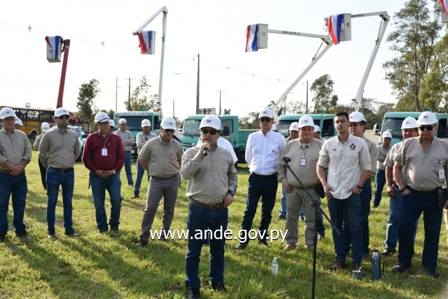 Durante el acto, el Ing. Aniano Esquivel, Director de Gestión Regional, mencionó algunas de las acciones más relevantes que se viene ejecutando en la ciudad de San Bernardino, en el marco del citado operativo, que involucra a más de 20 cuadrillas y aproximadamente 60 funcionarios de distintas unidades técnicas de la Institución con vehículos con hidroelevadores para la ejecución de los trabajos de mantenimiento integral de las redes de distribución eléctrica, que consiste en la colocación de 3.150 separadores para evitar el contacto entre los conductores de las líneas de distribución y por ende, minimizar los cortes del suministro.