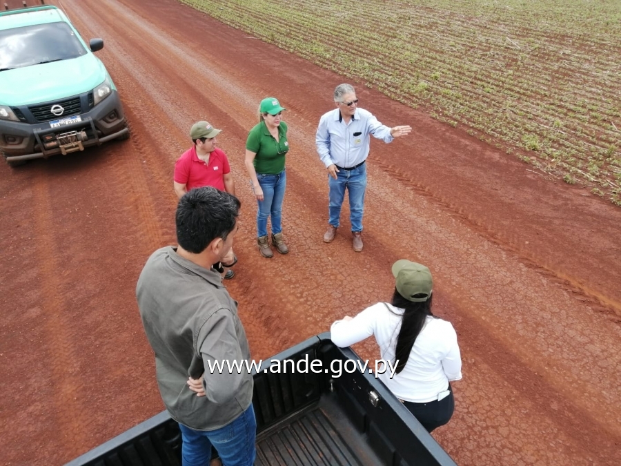 La comitiva de la ANDE, que estuvo conformada por funcionarios del Departamento de Gestión de Cuencas de la Dirección de Gestión Ambiental, fue recibida por el Sr. Intendente Ing. Agr. Edoard Schaffrat; la Ing. Agr. Jazmín Zotti, de la Secretaria de Gestión Ambiental de la Municipalidad y el Ing. Agr. Eloi Borges, Jefe del Dpto. Ambiental y Desarrollo Sostenible de la Cooperativa de Producción Agropecuaria Naranjal - COPRONAR.
