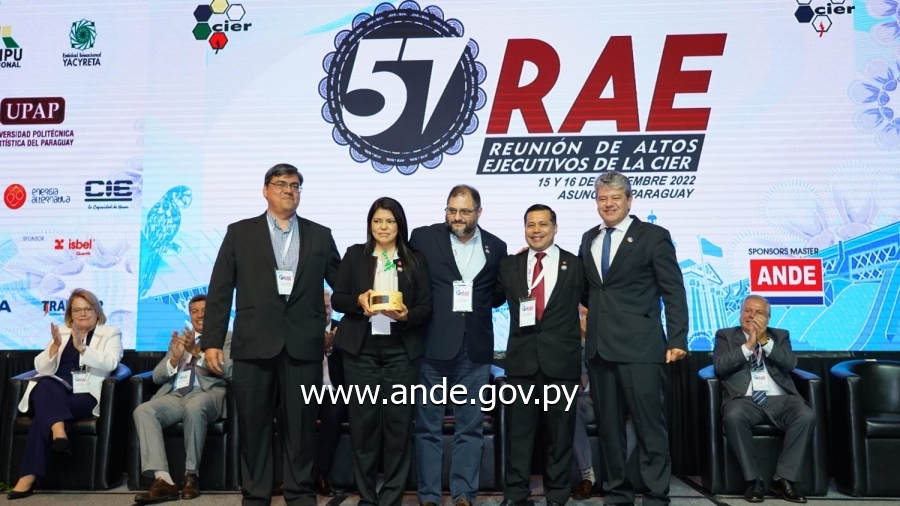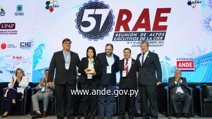 La Comisión de Integración Energética Regional (CIER), realizó la entrega de los premios CIER de innovación y premios CIER de Calidad - Satisfacción de Clientes - Ing. José Vicente Camargo 2022”, otorgando a la ANDE el segundo premio dentro de la categoría Descarbonización por el Programa "Desarrollo de Proyectos Solares a gran escala conectados a la red", presentado por el Ing. José Vallejos, la Dra. Stella Maris Villalba, y la orientación del Director Ing. Tito Ocariz, funcionarios de la Dirección de Planificación y Estudios de la ANDE y comprende la implementación de 500 MW en parques solares en todo el territorio nacional.