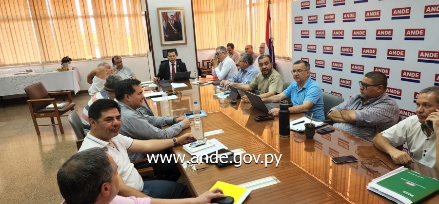 Presidente de ANDE, Ing. Félix Sosa y funcionarios de la Gerencia Técnica, Dirección de Distribución y Dirección de Gestión Regional participan de una reunión de planificación para coordinar acciones y grupos de trabajo para la agilización en la atención de reclamos, en caso de necesidad, en las fiestas de Navidad y Año Nuevo.
