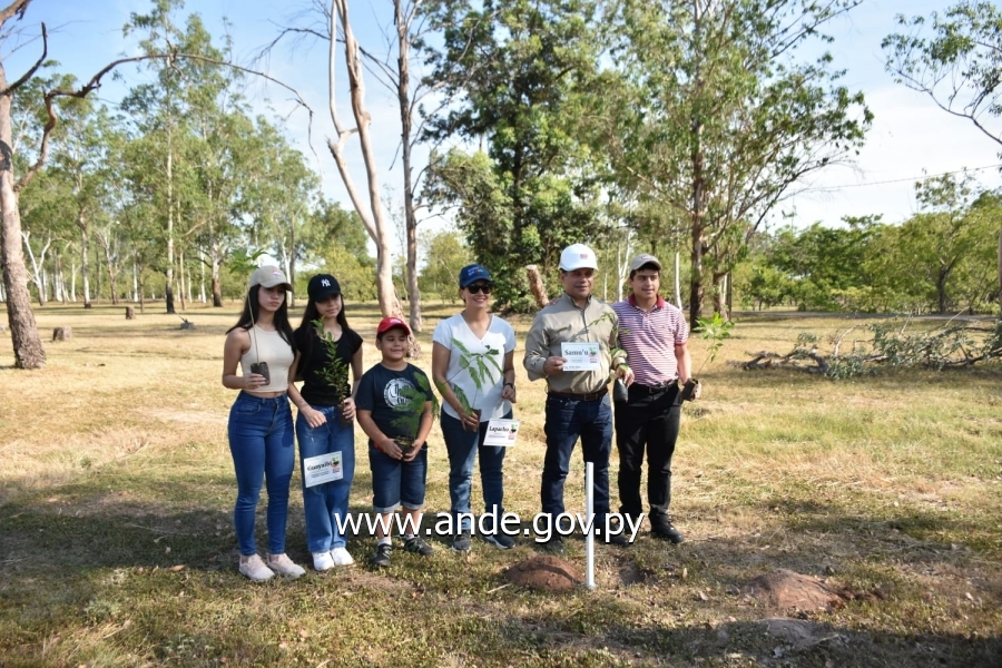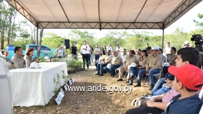 Al término del acto, ejecutivos de la Institución y el Pdte. de la ANDE acompañado de su señora esposa, Bertha González de Sosa e hijos, procedieron a plantar 60 arbolitos de especies nativas en el lugar.