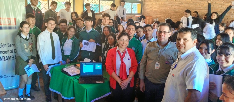 La Administración Nacional de Electricidad realizó, ayer lunes10 de abril del corriente, charlas educativas a alumnos y alumnas de la Escuela Básica N° 476 – Centro Educativo Lomas Valentinas y del Colegio Nacional “Prof. Manuel Ayala”, ambas de la localidad de Cumbarity, de la ciudad de Villeta, donde participaron un total de 110 alumnos.