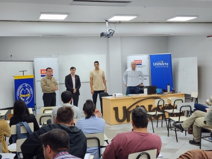 La actividad estuvo acompañada por el Ing. Hugo Rolón, Presidente de la Mesa Examinadora, el Lic. Pedro Crisccioni, Instructor y Miembro de la Mesa, el Lic. José Villalba, representante de Electrón, Directivos y Representantes de UNINORTE.