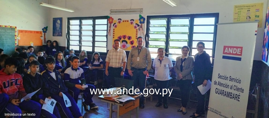 En la víspera, martes 18 de abril del corriente, funcionarios de la Sección Comercial Guarambaré, dependiente de la Agencia Regional Central compartieron una jornada de aprendizaje y de información con alumnos de la Escuela Básica N.º 706 “Don Antonio J. Delvalle” de la ciudad de Itá, departamento Central, en donde se habló sobre el uso eficiente y racional de energía eléctrica, los beneficios y utilidades de la App “Mi ANDE”, entre otros beneficios y servicios que ofrece la Institución a sus clientes.