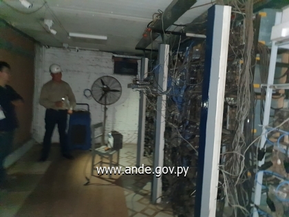 Tras unas verificaciones de suministros realizados en fecha, jueves 20 de abril del corriente en la ciudad de San Antonio, departamento Central, funcionarios del área de intervenciones de la División de Pérdidas de la ANDE, constataron una diferencia entre la corriente medida de forma instantánea en Media Tensión y lo registrado en Baja Tensión por los medidores asociados a los NIS 1566941 y 2613895, motivo por el cual radicaron una denuncia ante el Ministerio Público por el delito de sustracción de energía eléctrica, solicitando el allanamiento del lugar, a fin de constatar el hecho y evidenciar el uso intensivo especial del servicio de energía eléctrica, categoría que corresponde a la criptominería.