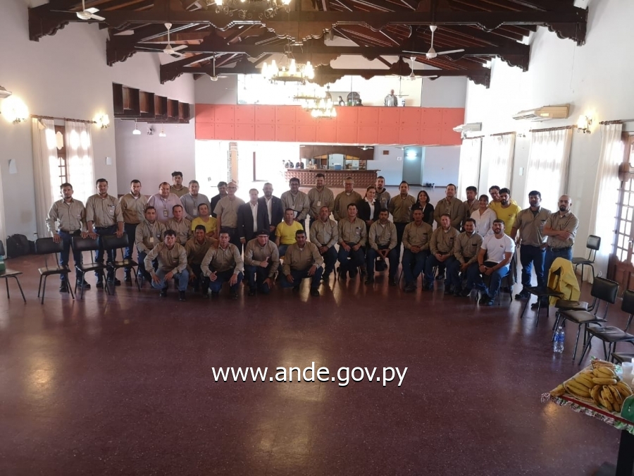 En el marco del Curso de Capacitación de Competencias en Seguridad, Calidad y Destreza para el 2° Rodeo de Electricistas de Distribución de la ANDE, el Presidente de la ANDE, Ing. Félix Sosa acompañado de ejecutivos de la Institución, participó hoy viernes 21 de abril del corriente, de la jornada de Capacitación sobre Alimentación Saludable y Cuidados Físicos,el cual forma parte de los contenidos desarrollados en el mencionado curso, y fue realizado en la sede Social de la ANDE de Asunción, dirigido a 21 electricistas de distribución, 5 Jueces y 2 Miembros del Equipo de Coordinación.