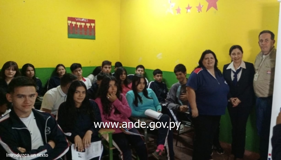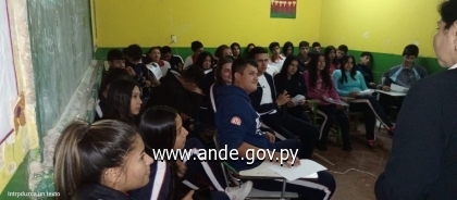 Funcionarios de la Agencia Regional Central de la ANDE, estuvieron en esta oportunidad, en el colegio Yjhovy de la ciudad de Itá, departamento Central, en donde realizaron charlas de concienciación sobre el uso eficiente de energía eléctrica y las utilidades de la App Mi ANDE, entre otros temas de interés referentes al servicio que ofrece la Institución.