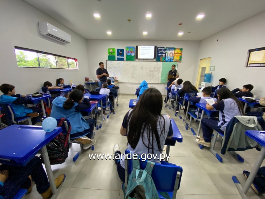 Prosiguiendo con las charlas informativas y educativas en Instituciones educativas con el objetivo de crear conciencia sobre la importancia de la eficiencia energética en el hogar, funcionarios de la Administración Nacional de Electricidad estuvieron en el Colegio Adventista de la Ciudad de Curuguaty, Dpto. de Canindeyú, en donde brindaron a alumnos del 6.º. Grado, una charla sobre el uso racional, eficiente y seguro de la energía eléctrica, sobre el consumo promedio de cada uno de los electrodomésticos del hogar y los beneficios de la App Mi ANDE.