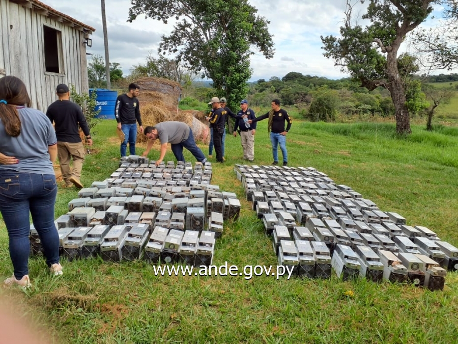 La Administración Nacional de Electricidad a través de la Oficina de Gestión de Pérdidas Regional Norte, dependiente de la División de Regional Norte, intervino el pasado lunes 8 de mayo del corriente, un local donde funcionaba en forma clandestina una Minería de Criptomonedas, ubicada en la ciudad de Yby Ya´u, departamento de Concepción. La irregularidad constatada al momento de la intervención fue una conexión directa sin medidor en Media Tensión que alimentaba a 2 transformadores de 1000 kVA, un transformador de 630 kVA, un transformador de 500 kVA y un transformador de 25 kVA, totalizando 3.155 kVA.