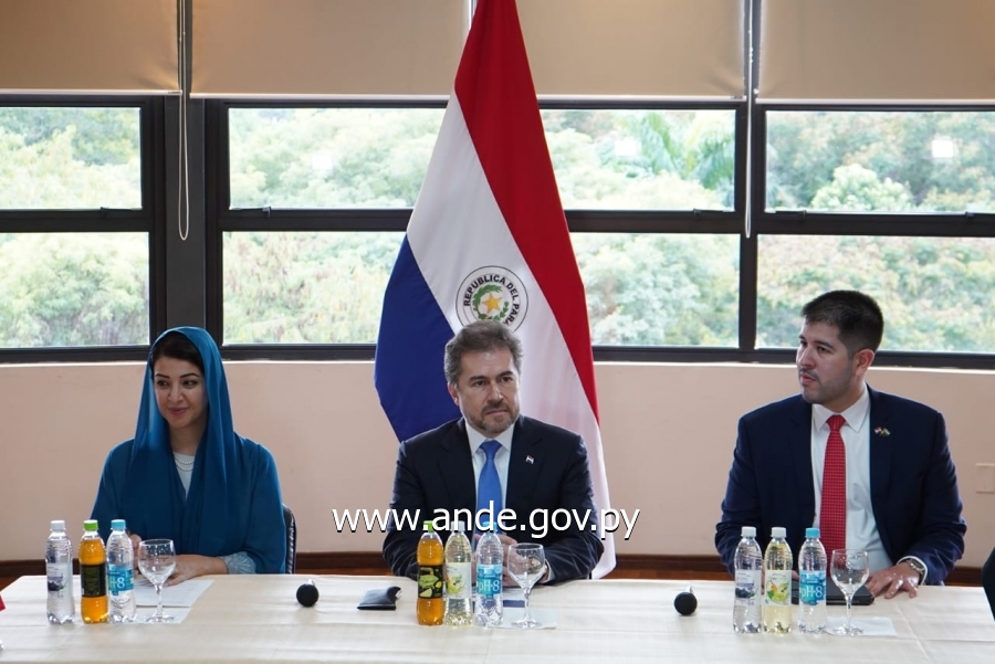 Con el compromiso de apoyar y acompañar el desarrollo económico del país y la promoción de relaciones internacionales sólidas, el Presidente de la ANDE, Ing. Félix Sosa, acompañado del Director de Planificación, Ing. Tito Ocariz, participó del acto oficial y rueda de negocios organizado por el Ministerio de Industria y Comercio, en el marco de la visita al Paraguay de Su Excelencia Doña Reem Al Hashimy, Ministra de Estado para la Cooperación Internacional de los Emiratos Árabes Unidos.