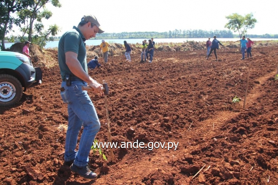 La jornada, fue llevada a cabo el pasado 6 de junio, a fin dar cumplimiento a las actividades establecidas en el Plan Operativo Anual 2023, entre las que se destacan las jornadas de arborización para la reforestación por etapas de más de 30 km de perilago del lago Yguazú, que cumple un rol importante en la conservación del suelo, ya que contrarresta el arrastre de sedimentos al citado lago, que afectan la calidad y cantidad del agua utilizada para la generación de energía eléctrica.
