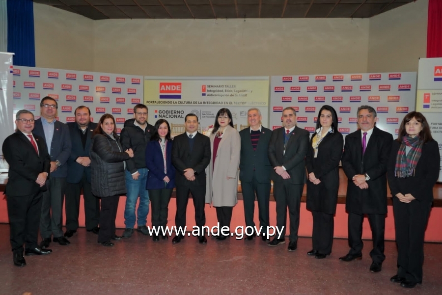 Con el objetivo de fortalecer la Cultura Ética y la Integridad en el sector eléctrico y como parte de las actividades que la ANDE viene realizando para impregnar la cultura de la ética e integridad en la Institución, se llevó a cabo el primer Seminario de Integridad, Ética, Legalidad y Anticorrupción en la Institución. La apertura estuvo a cargo del Presidente de la ANDE, Ing. Félix Sosa, y contó con la presencia del Ministro de la SENAC, Dr. Juan Federico Martín Hetter, ejecutivos de la ANDE, miembros de las Comisiones de Ética, de Buen Gobierno, Equipo de Alto Desempeño en Etica, funcionarios de la Oficina de Anticorrupcion y Legalidad de la ANDE y la Oficina de Evaluacion del MECIP, asi también de diferentes áreas de la Institución e invitados especiales.