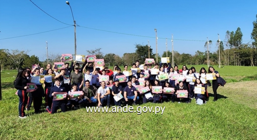 La Administración Nacional de Electricidad (ANDE), a través del Departamento de Gestión de Cuencas, de la Dirección de Gestión Ambiental (GA), ha llevado adelante importantes trabajos para la conservación de los Recursos Naturales (RR NN) en las cuencas de los Lagos Yguazú y Acaray, cuya meta suprema es la de garantizar el volumen y calidad del agua de ambos lagos para la generación sostenible de la energía eléctrica. En ese contexto, el día de hoy, viernes 30 de junio, recibió la visita de 48 alumnos del 7mo. grado, 1er. 2do. y 3er curso de la media y profesores del Colegio School of Tomorrow - GDS de Ciudad del Este, departamento Alto Paraná, acompañados por la Directora de la Institución educativa, la Lic. Bertha González de Sosa, a fin de fomentar la participación activa de las nuevas generaciones en pos del cuidado del medio ambiente