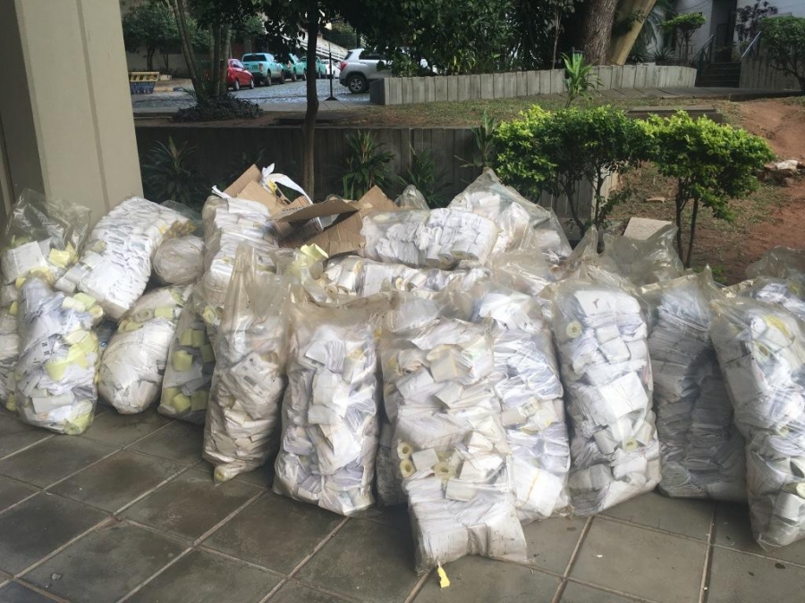 El primer lote de residuos consistió, por un lado, en 2109 kg de rollos de papel de cajas registradoras de los años 2014, 2015, 2016 y 2017 que ya no tienen valor para la Institución, entregados por el Departamento de Ingresos de la Gerencia Financiera, el pasado 30 de junio del año en curso.