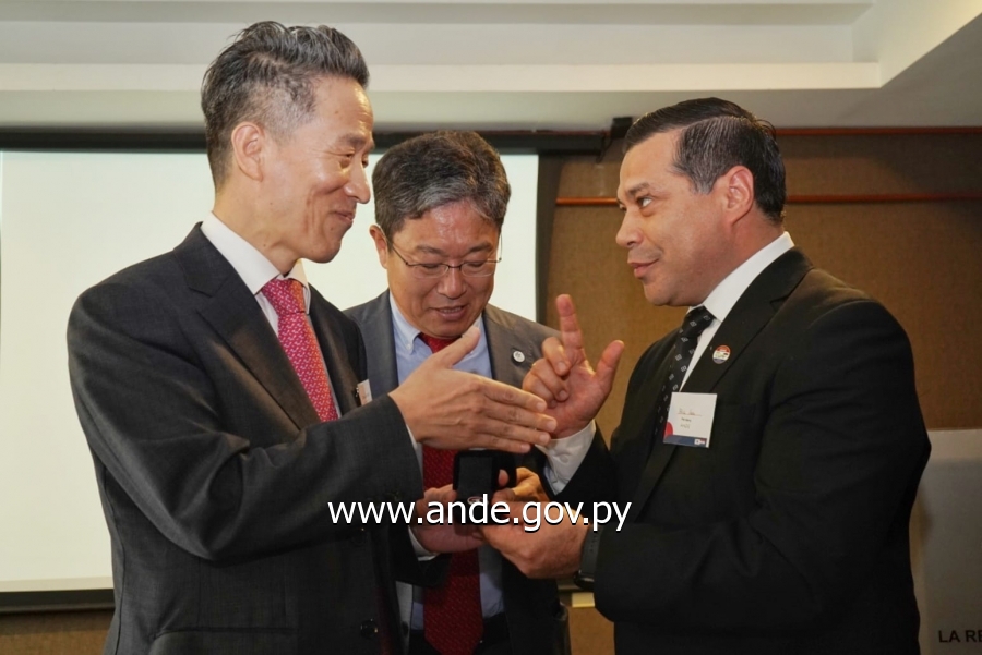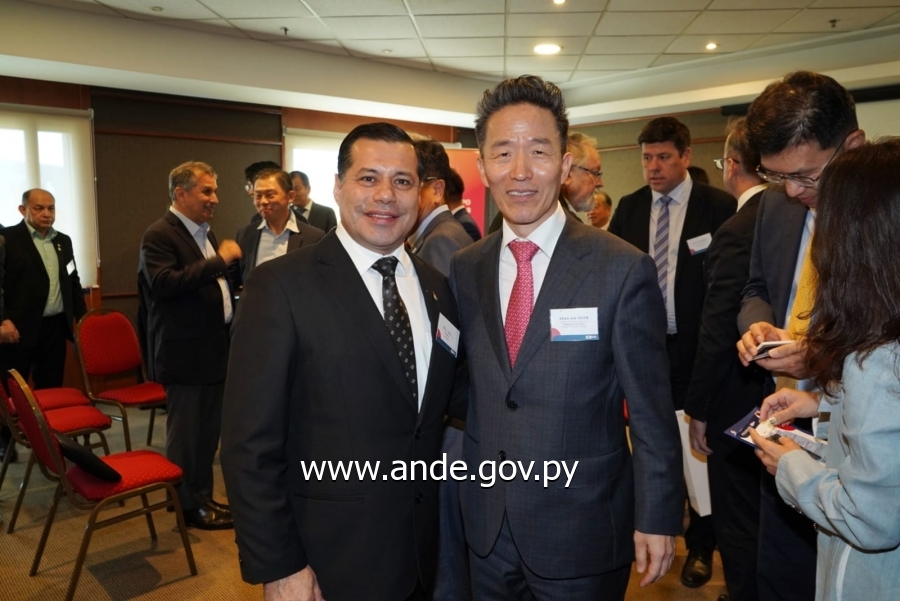 Con la presencia del Presidente de la ANDE, Ing. Félix Sosa, el Director de Planificación, Ing. Tito Ocariz, y el Ing. José Vallejos, se llevó a cabo en la ciudad de Asunción el Foro Empresarial para el Fortalecimiento de la Cooperación Económica entre Corea y Paraguay.
