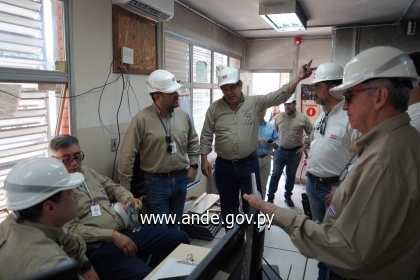 El titular de la ANDE, Ing. Félix Sosa acompañado de su equipo técnico, estuvo recorriendo las obras de ampliación de la Subestación Itauguá, que actualmente se encuentra en su etapa final. Una vez puesta en servicio, esta obra permitirá mejorar la calidad y la continuidad del servicio eléctrico a mas de 25.000 ciudadnos y pobladores de las ciudades de Itauguá, Ypacarai y parte de San Bernardino del departamento Centra y Cordillerar espectivamente. .