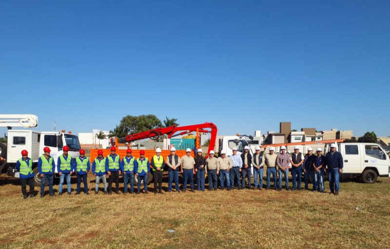 El inicio de los trabajos contó con la presencia de jefes locales de la ANDE y representantes de la empresa encargada del proyecto.