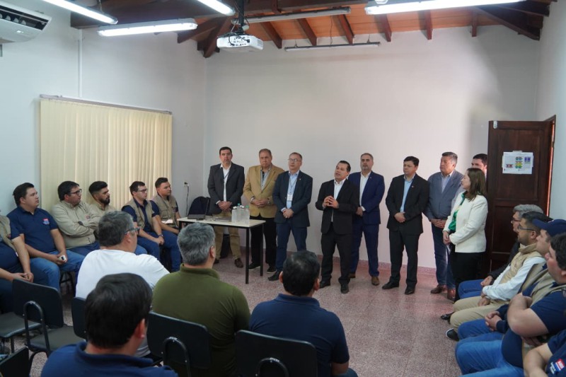 Acompañaron también al presidente el director de Recursos Humanos, el Lic. Javier Boungermini, el Gerente Comercial, Lic. Hugo Rolón, el director de Gestión Regional, el Ing. Jorge Barrios, asi como el secretario ejecutivo de PACIER, Ing. Juan Carlos Álvarez, el Ing. Aniano Esquivel, la jefa de Departamento de Formación y Capacitación, la Lic. Fabiola Ayala y un equipo técnico de la institución.