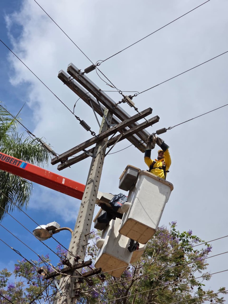 Las tareas consistieron en el cambio de crucetas de madera dañadas, mantenimiento de equipos de maniobra y corte de ramas cercanas a las líneas eléctricas en las zonas de Salado, Villa San Francisco, Mbajue Filadelfia, Villa San Miguel, Aguapey y Mbajue San Francisco, del distrito de Limpio.