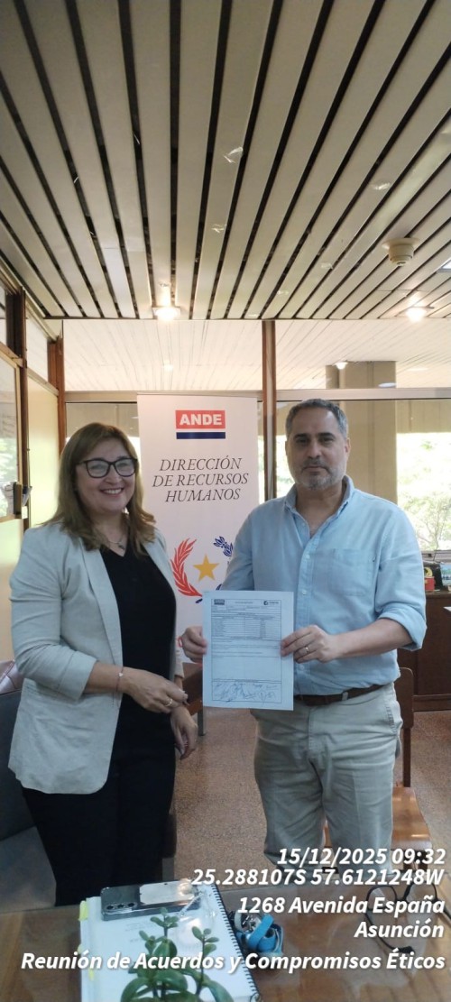 En el marco de la implementación de la Norma de Requisitos Mínimos para Sistemas de Control Interno – MECIP 2015, la Administración Nacional de Electricidad (ANDE), a través de la Dirección de Recursos Humanos (DRH), llevó adelante la actualización de los Acuerdos y Compromisos Éticos 2025 correspondientes a todas sus unidades administrativas.