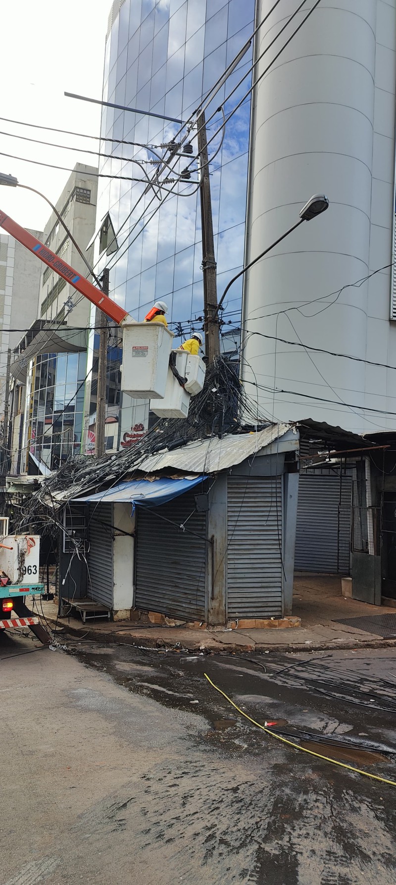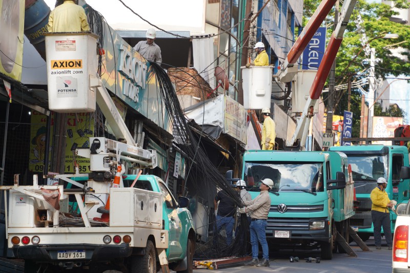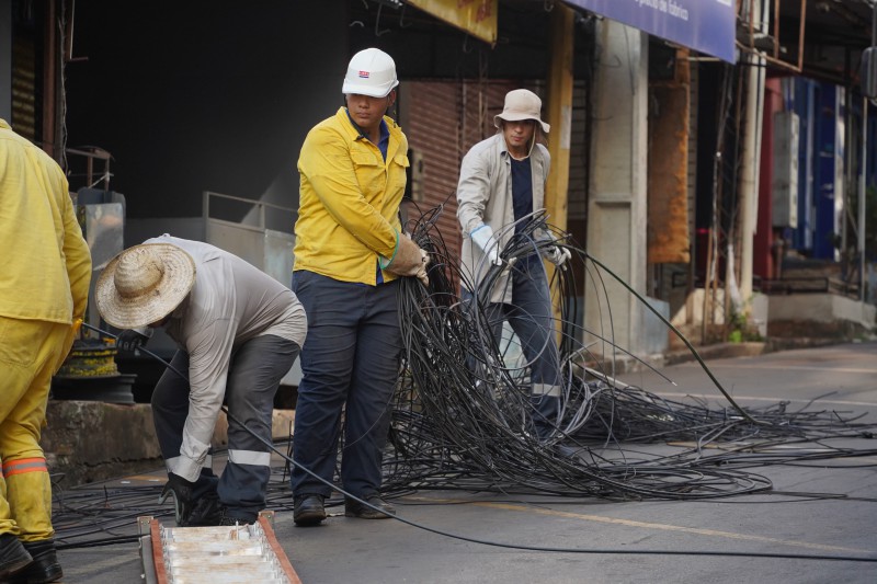 Desde tempranas horas de este domingo 18 de enero, la ANDE realiza el retiro del último tramo de conductores de señales débiles en el marco del Plan Piloto de Modernización de la Red Eléctrica y Reordenamiento de Redes de Telecomunicaciones en el microcentro de la ciudad de Ciudad del Este, departamento de Alto Paraná.