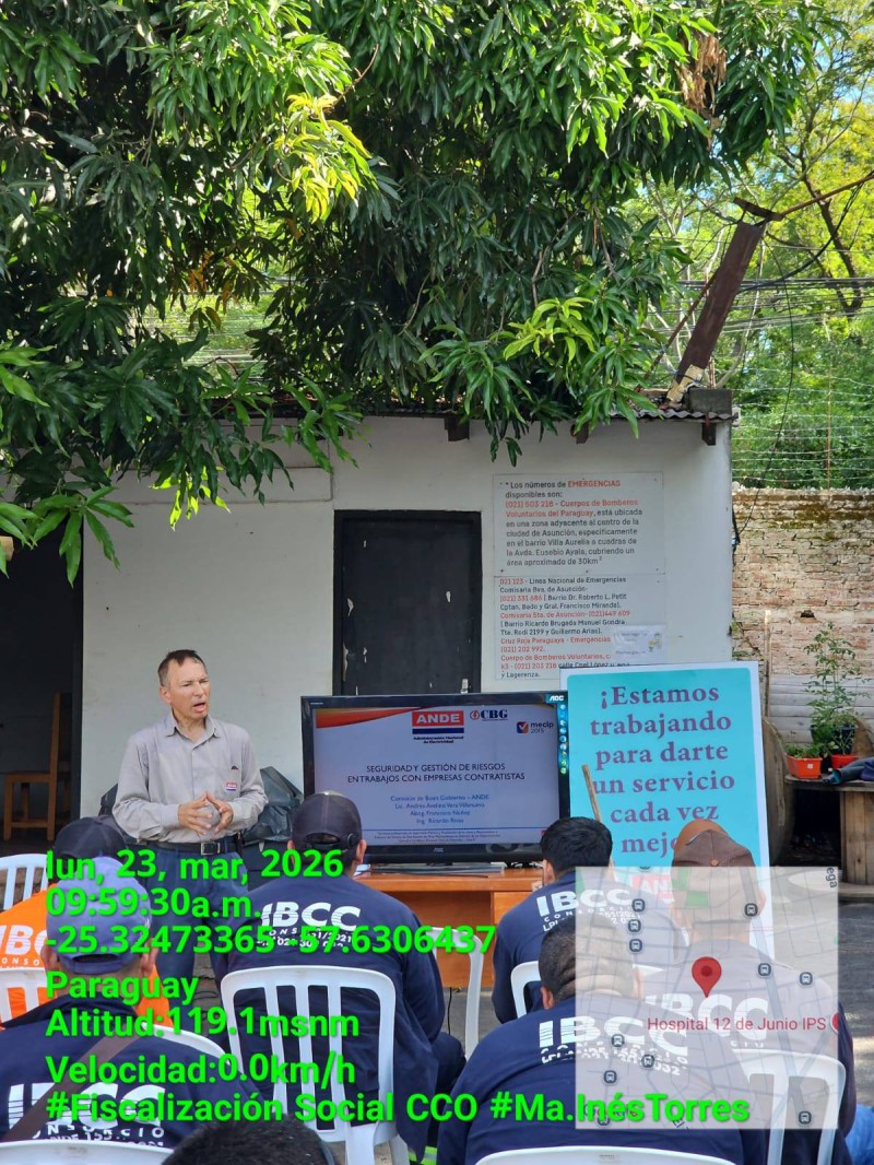 La actividad se desarrolló en el obrador del Consorcio IBCC, ubicado en la ciudad de Asunción, y fue organizada por el Consorcio Consultor Oriental (CCO), en el marco de la Licitación Pública Internacional ANDE N° 1614/2021, correspondiente a los servicios profesionales de supervisión técnica y fiscalización de las obras de mejoramiento y refuerzo del sistema de distribución del área metropolitana, en distritos de los Departamentos Central y Cordillera.