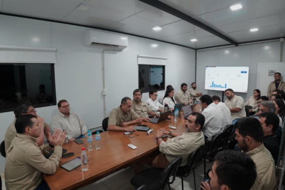 A tempranas horas de hoy, lunes 30 de marzo, en el marco del seguimiento técnico y operativo del proyecto de construcción de la Línea de Transmisión de 500 kV Yguazú – Valenzuela, el presidente de la ANDE, Félix Sosa, acompañado del Gerente Técnico, Ing. Tito Ocáriz, y un equipo técnico de la institución, mantuvieron una reunión de seguimiento, coordinación y análisis del avance de las obras con representantes de la empresa contratista RIEDER – INCOMISA, encargada de la ejecución del proyecto.