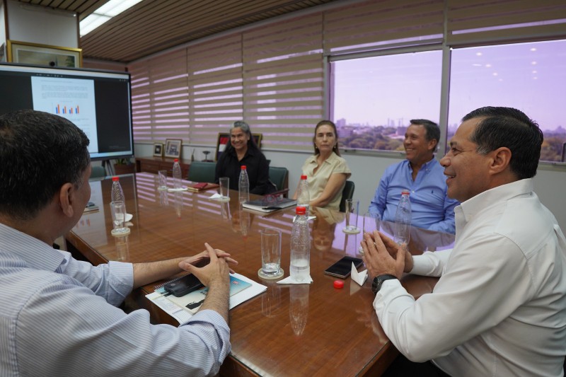 El presidente de la Administración Nacional de Electricidad (ANDE), Ing. Félix Sosa, mantuvo una reunión este martes 31 de marzo con representantes de la Cámara Paraguaya de Desarrolladores Inmobiliarios (CAPADEI), con el objetivo de fortalecer la coordinación interinstitucional y acompañar el crecimiento del sector inmobiliario en el país.