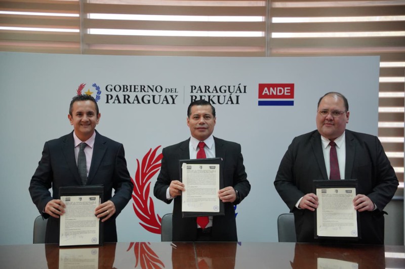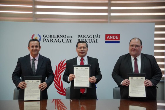 En la fecha, viernes 10 de abril, el presidente de la ANDE, Ing. Félix Sosa; el intendente de Carlos Antonio López, Sr. Hernán David Cubas; y el presidente de la Caja de Jubilaciones y Pensiones del Personal de la ANDE (CJPPA), Ing. Alan Achar, firmaron un Convenio Marco de Cooperación Interinstitucional con miras a la construcción de un nuevo edificio corporativo de la ANDE, para mejor atención a los clientes de la zona.