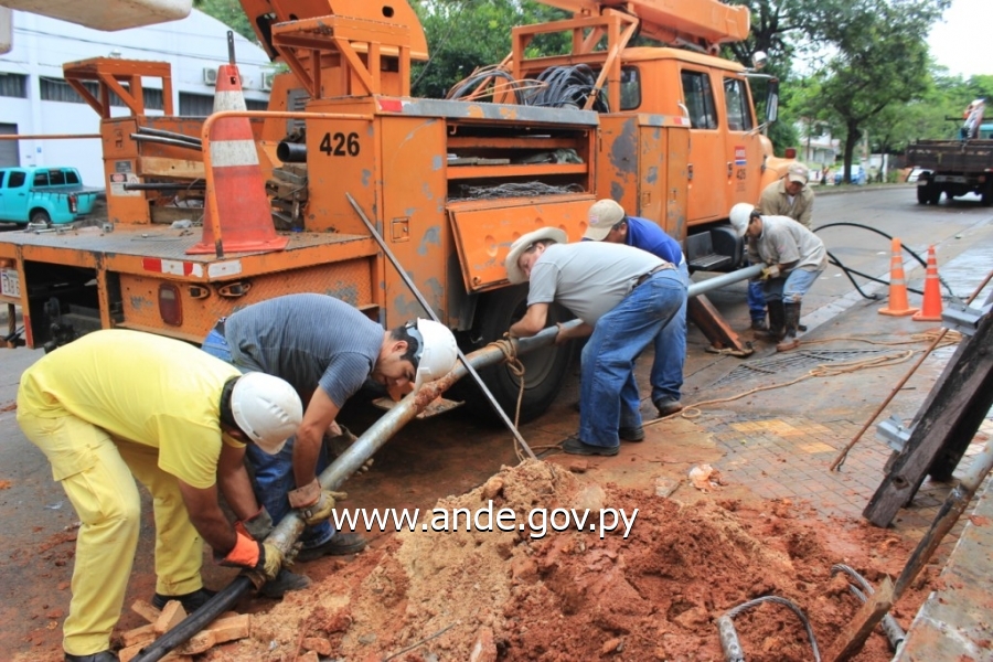 En ese contexto, el sábado 28 de noviembre, en el barrio Mburicao de Asunción se realizaron trabajos de adecuación de estructura de Media Tensión, reubicación de acometidas en Media Tensión y retiro de línea Media Tensión. Asimismo, en el asentamiento San Antonio de Villa Hayes se montó un nuevo Puesto de Distribución para el aumento de potencia y se adecuaron las estructuras de Baja Tensión de la zona. Por otra parte, en el barrio Ytororó de la Compañía Thompson, ciudad de Ypané, se procedió al cambio de conductores de aluminio de 35 mm2 por 70 mm2 en Baja Tensión.