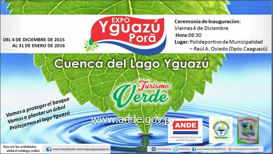 Que debido a las inclemencias del tiempo en el Departamento de Caaguazú y el pronóstico de lluvia extendido hasta el próximo fin de semana, los organizadores de la Expo Yguazú Porã- Edición 2015, han decidido suspender la actividad prevista para mañana viernes 4 de diciembre de 2015 en la localidad de Raúl Arsenio Oviedo, del citado departamento. La exposición es organizada por dicho municipioy la Asociación Multisectorial Represa Yguazú, con la participación y apoyo de la Administración Nacional de Electricidad.
