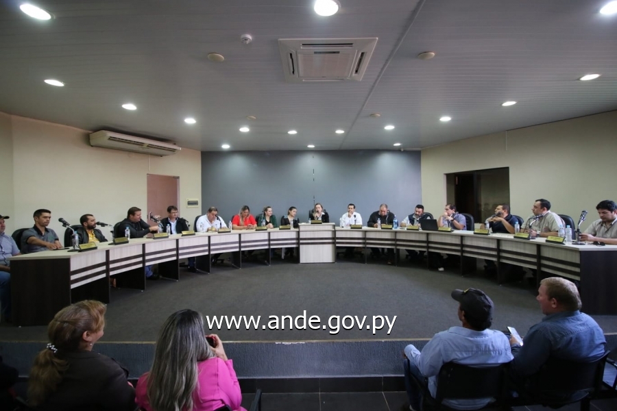 El Pdte. de la Administración Nacional de Electricidad, Ing. Félix Sosa acompañado del Director de Gestión Regional, Ing. Aniano Esquivel y su equipo técnico, participó en la tarde hoy, viernes 22 de abril del cte. de una mesa de trabajo con la Intendente de Santa Fe del Paraná, la señora Fátima Doerner Melnek y concejales municipales, para coordinar trabajos interinstitucionales con miras al mejoramiento del suministro eléctrico para la instalación de nuevas industrias como frigoríficos y Puertos en dicho municipio del departamento de Alto Paraná.