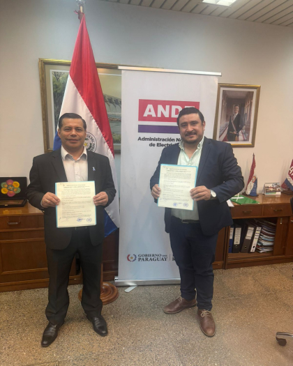 Realizaron la firma de este Acuerdo, el Presidente de la Administración Nacional de Electricidad, Ing. Félix Sosa y el Intendente de la ciudad de Caapucú, el Lic. Derlis Gustavo Adolfo Penayo Arce.