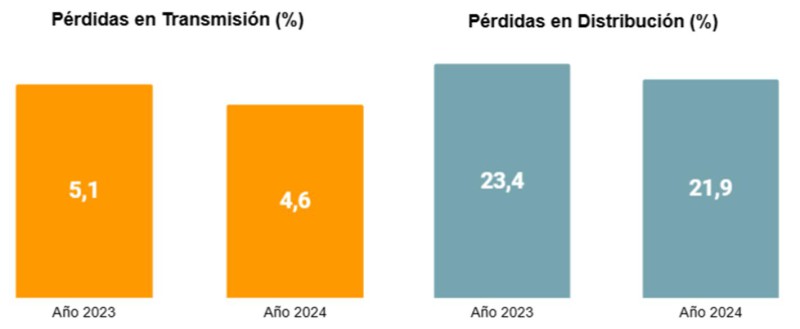 Un hito relevante ha sido la reducción de pérdidas en el sistema eléctrico, gracias a la aplicación de tecnologías avanzadas y el fortalecimiento de las acciones de control y monitoreo. Estas mejoras han permitido disminuir las pérdidas técnicas y no técnicas, logrando la estabilización y reducción de pérdidas eléctricas técnicas y no técnicas en 2 %, en el cual las pérdidas eléctricas totales en distribución se redujeron de 23,4 % a 21,9 %al cierre del año 2024.