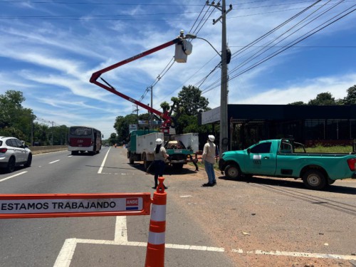 La ANDE, a través del Departamento de Distribución Central, ejecutó trabajos de reposición y refuerzo del sistema de iluminación pública en los tramos viales priorizados desde el Mercado de San Lorenzo, sobre las rutas PY01 y PY02, hasta el peaje de Ypacaraí, con el fin de acompañar de manera segura el tránsito de peregrinantes rumbo a la Basílica de Caacupé.