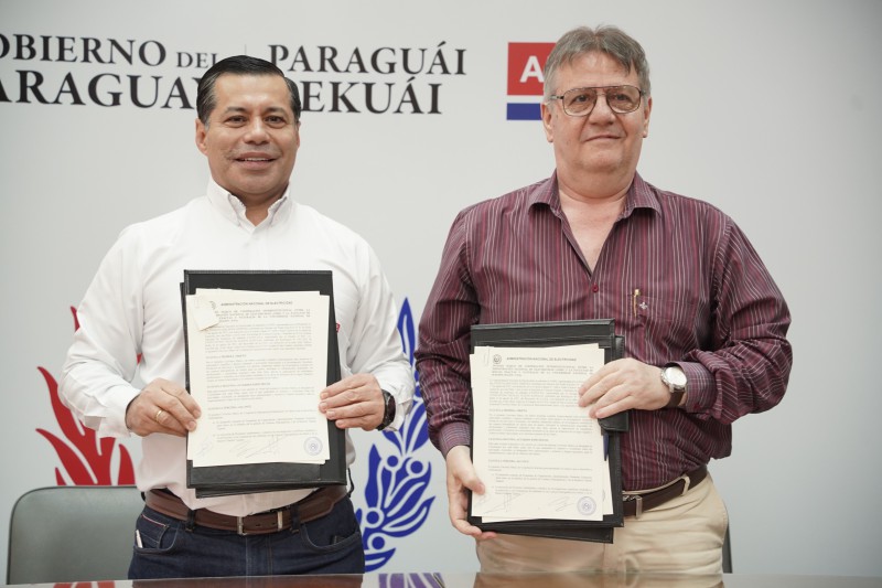 Ambos documentos fueron suscritos por el Ing. Félix Sosa, presidente de la ANDE, y el Prof. Lic. Constantino Guefos, decano de la FACEN-UNA.