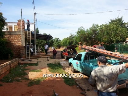 Paralelamente a los trabajos realizados para la firma de contratos de propiedad, la Administración Nacional de Electricidad y siguiendo con su política de regularización en los territorios sociales, procedió la semana pasada, a la colocación de medidores y la adecuacion de las conexiones y acometidas que se encontraban en forma irregular, ya que un requisito fundamental para el otorgamiento de los títulos de propiedad es la regularización de los suministros y las deudas con la ANDE.
