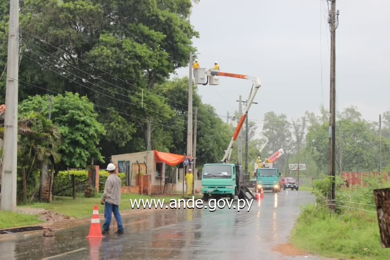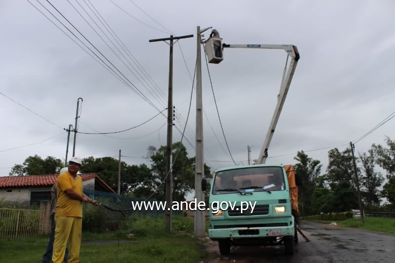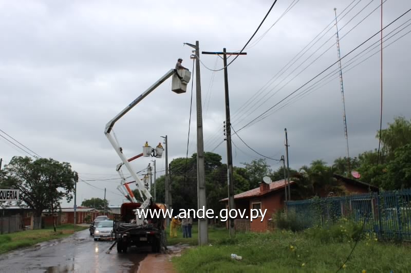 La Administración Nacional de Electricidad realizó en la fecha, sábado 15 de marzo, trabajos de mejoramiento de líneas de Media y Baja tensión en la ciudad de Limpio, frente a la Urbanización Surubi’í, del departamento Central.