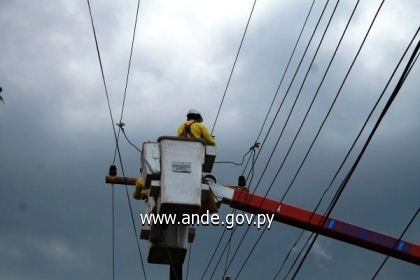 La Administración Nacional de Electricidad, informa que entre las 7:20 y las 11:00 horas del día martes 18 de marzo de 2014 y debido al temporal con descargas atmosféricas que afectó a gran parte de Asunción y área Metropolitana, salieron fuera de servicio 10 alimentadores de 23.000 Voltios, afectando a 8 Centros de Distribución (Republicano, Lambaré, Villeta, Villa Hayes, Guarambaré, Tres Bocas, San Miguel y San Lorenzo). Las zonas afectadas son los barrios Roberto L. Petit, Santa Ana, Las Mercedes, en Asunción; Itá Enramada, Puerto Pabla, Mbachió, en Lambaré, mientras que en el área Metropolitana afectó a Villeta, parte de San Lorenzo, Guarambaré, Villa Hayes, Ita, entre otros.