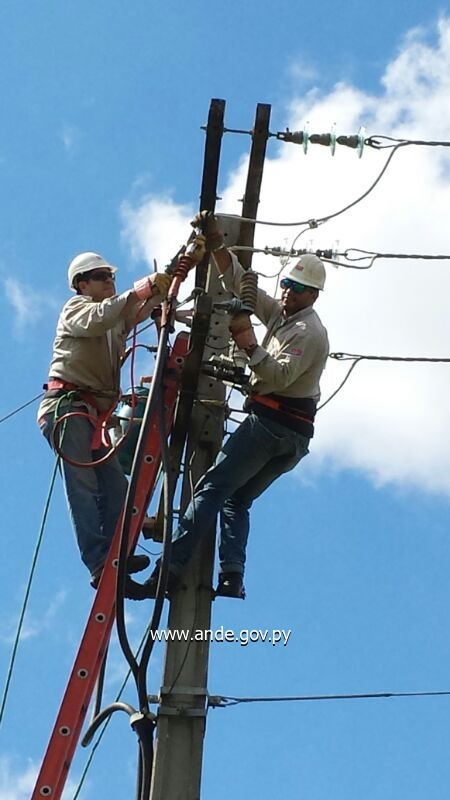 La Administración Nacional de Electricidad prosiguió en la fecha, sábado 22 de marzo, los trabajos de mejoramiento de líneas de Media y Baja tensión en la ciudad de Limpio, departamento Central, dando continuidad al cronograma establecido para el cambio de conductores de línea de Media y Baja Tensión desnuda por cables pre ensamblados. El pasado 15 de marzo, se había construido unos 600 m de línea protegida, de un total de 2100 m. que contempla el proyecto de mejoramiento del sistema eléctrico de la mencionada zona.