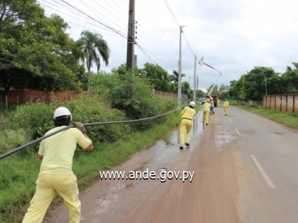 La Administración Nacional de Electricidad realizó este fin de semana, trabajos de mejoramiento de líneas de Media y Baja Tensión en varias zonas de Asunción y del área Metropolitana.