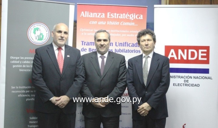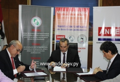 El presente documento fue suscripto por el Ing. Víctor Romero Solís, Presidente de la ANDE; Econ. Hugo Royg Aranda, Presidente del Instituto de Previsión Social y el Ing. Darío E. Núñez, Presidente de la Caja de Jubilaciones y Pensiones del Personal de la ANDE.