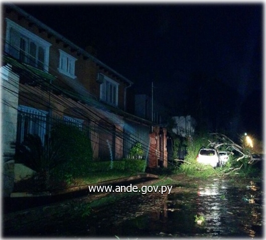 En la ciudad de Capiatá, a la altura del km 19,5 de la Ruta I, fuertes ráfagas provocaron la caída de árboles sobre la red del tendido que afectaron a los barrios Santa Rita, El Retiro, San Antonio, Virgen de Caacupé, El Rocío, San Miguel, San José Obrero y Caacupemí, quedando sin el servicio de energía eléctrica alrededor de 1.200 usuarios. Inmediatamente luego de ocurrido el evento, cuadrillas de la ANDE acudieron al lugar del desastre, a fin de realizar cortes preventivos de la energía eléctrica para aislar los cables y los postes del tendido que fueron derribados debido a los fuertes vientos.